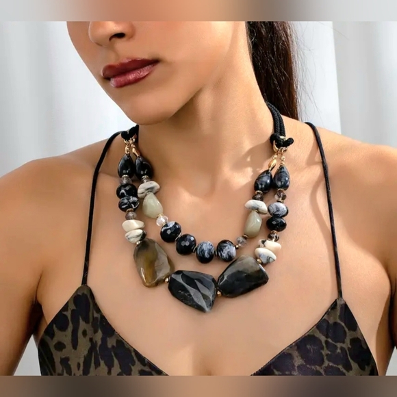 This stunning 14k Gold Plated resin chunky bead necklace features a blend of black and gold beads, and the choker design is perfect for adding a touch of elegance to any outfit Ideal for both casual and formal occasions.