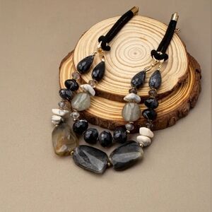 Vintage Double Layered Elegant Black and Gold Beaded Necklace