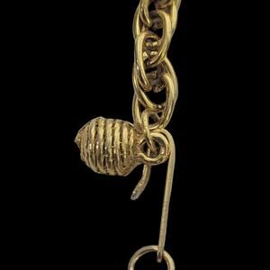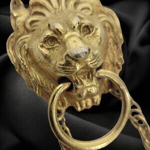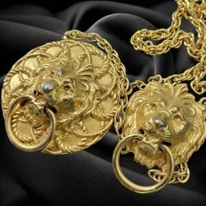 Vintage Double Lion Door Knocker Necklace Costume Jewelry Gold Pendant Statement