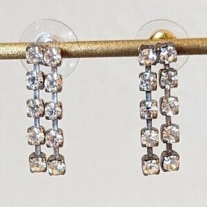 Vintage double rhinestone chain dangle earrings in silver tone. Pre-owned, they are in great condition.