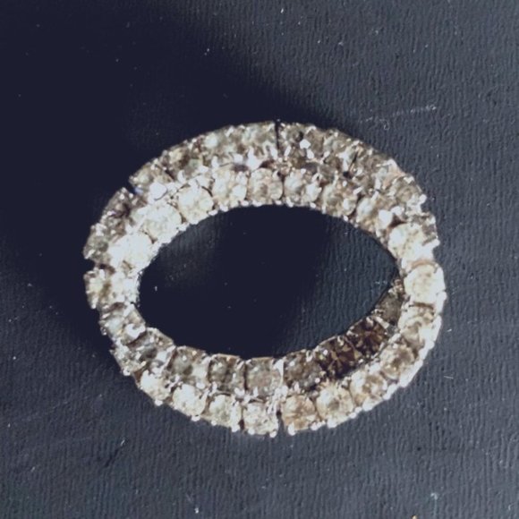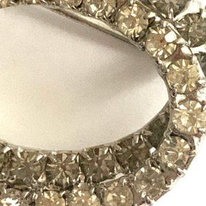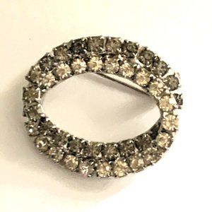 Vintage double oval circle brooch/pin in two tone clear & grey rhinestones in silver tone metal. It is in pristine vintage condition with very little wear visible on the finish and all stones intact.