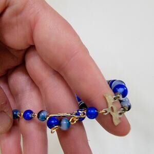 This vintage double strand beaded necklace features a bold and elegant design with alternating shades of vibrant blue and soft gray beads. The graduated bead arrangement adds depth and dimension, with larger beads at the center tapering to smaller beads toward the clasp for a balanced, flattering look. The beads are crafted with a lustrous finish, giving them a smooth, polished appearance that reflects light beautifully. The necklace measures approximately 18 inches, offering a comfortable length that sits gracefully on the neckline. Its secure clasp ensures ease of wear and durability. Perfect for adding a pop of color to any outfit, this necklace transitions effortlessly from day to evening wear. Whether styled with casual attire, professional outfits, or formal ensembles, it brings a touch of vintage charm and sophistication. An ideal piece for collectors, vintage jewelry lovers, or anyone who appreciates timeless statement accessories.