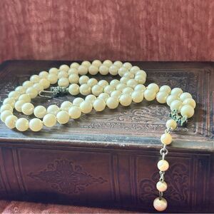 Vintage Double Strand Hand Tied Faux Pearl Necklace with Rhinestone Clasp