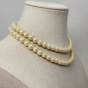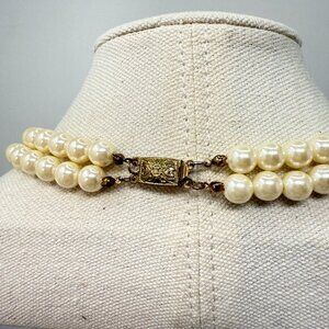 Vintage Double Strand Imitation Pearl Choker Necklace Gold-Tone Classic Retro