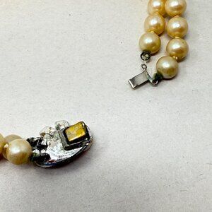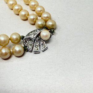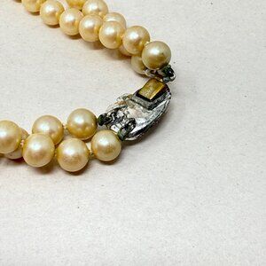 Vintage Double Strand Imitation Pearl Necklace Ornate Clasp Silver-Tone Elegant