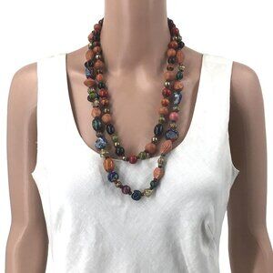 Vintage Double Strand Necklace Beaded Brown Wooden Painted Artisan Beads