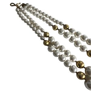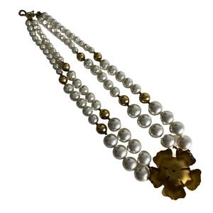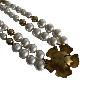 Vintage Double Strand Statement Faux Pearl Rose Necklace