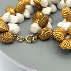 Vintage Double Twist Gold Tone White Plastic Sea Shell Beaded Necklace 20"