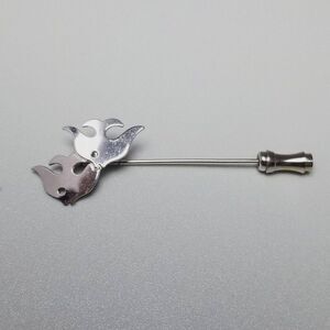 Vintage Double Angel Fish Stick Pin Brooch, Silver Tone Cut Out Design, Estate