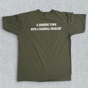 Vintage Olive green graphic tee featuring Doubleday Cafe design with baseball bats and bold lettering.