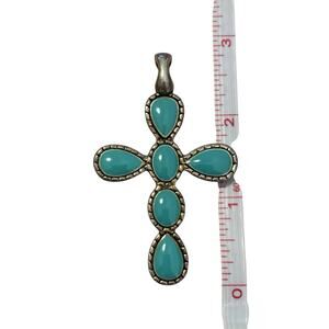 Vintage Double-Sided Cross Black and Teal 2.75" Long