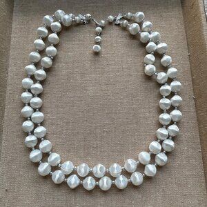Vintage Double-Strand Faux Satin Pearl Beaded Necklace Made in Japan