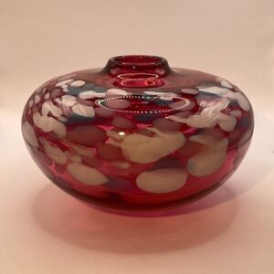 Vintage Douglas Becker Signed Cranberry Art Glass Vase Coin Dot Pattern