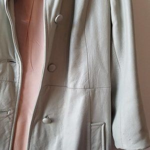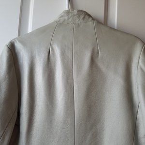 Very stylish and incredibly designed dove gray leather coat with satin lining.