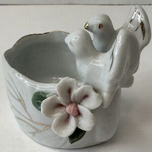 Vintage Doves Flower Planter Trinket Ring Box White w/Gold Trim Pink Floral RARE