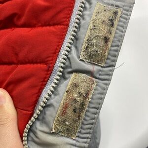 Last four images show stains and fabric stuck in loop and hook closure.