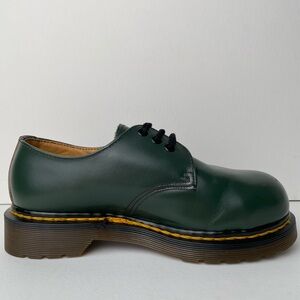Vintage Dr. Martens Doc England 1925 Green Double Stitch Steel Toe Oxfords UK 4