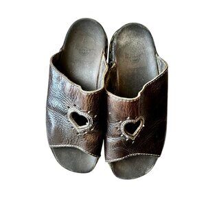 Vintage Dr. Martens Heart Cutout Leather Slide Sandals Brown US 12 Made in Engla