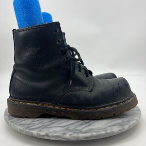 Vintage Dr Martens Work Boots Mens 9 Black Steel Toe Industrial Made in England