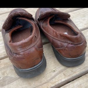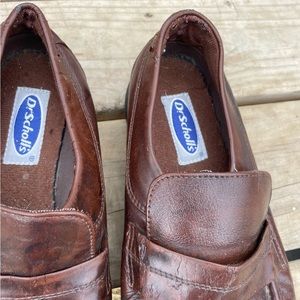 Vintage Dr. Scholls Shoes Men’s Leather Comfort Support Wide Shoe Size 10.5W Brwn Wide Width loafer. Some peeling on the back