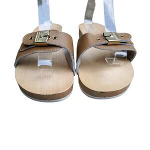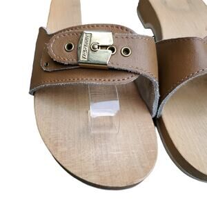 Vintage Dr Scholl’s Wooden Original Exercise Sandals Tan Brown Italy Scholls 9
