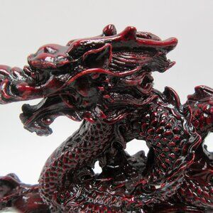 Vintage Dragon resin 'cinnabar' figurine - 7 1/2" long - 2024 Year of the Dragon