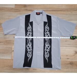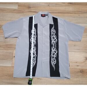 Vintage Dragonfly Clothing Shirt Mens L Gray/Black Embroidered Button Up Y2K