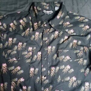 Vintage Dragonfly Flaming Dice Pearl Snap Button Shirt