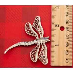Vintage Dragonfly Rhinestone Silver Tone Brooch - O15