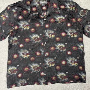 Vintage Dragonfly Shirt Y2K Men Large Rayon 2000 Planets Short Sleeve NASA Space