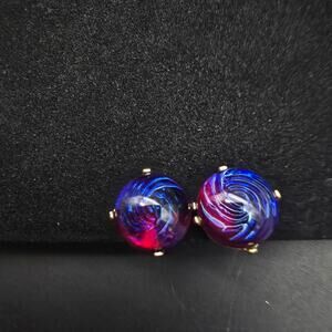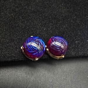 Vintage Dragon's Breath Screw Back Earrings Purple Blue Cabochon