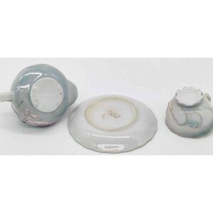 Vintage preowned condition. Showing minor age/wear. Tea cup had handke broken off but I glued it back on and you cant tell much at all. Also has a tiny chip as pictured. As is. Please see all photos as they accurately describe.