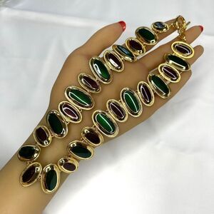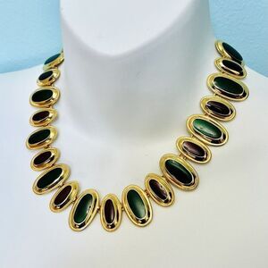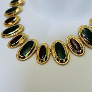 Absolutely stunning piece! Vintage Dramatic Enamel Collar Necklace Statement Bib Green Mahogany. Very nice preowned Condition without notable flaws or damage. Please preview all Pictures for Condition and/or measurements. If you have any questions please ask prior the purchase. Your Order will be shipped with care.