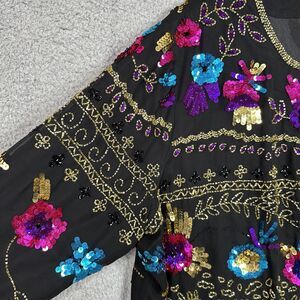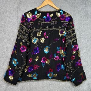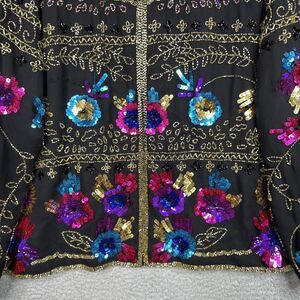 Vintage Draper’s & Damon’s 1X Silk Sequin Beaded Floral Jacket Black Glam