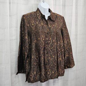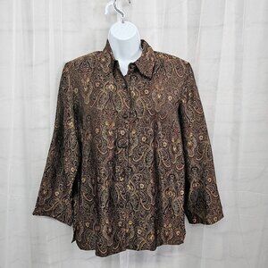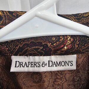 Vintage Drapers & Damons Blouse Brown Burgundy Jacquard Brocade Button-Down M