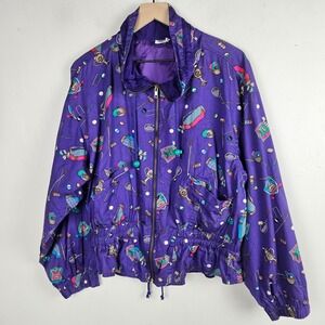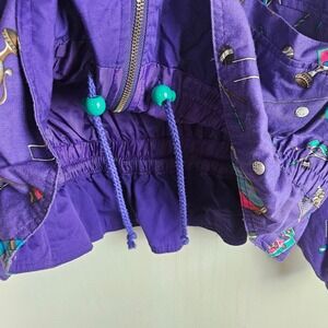 Vintage Drawstring Waist Zip Front Jackets Women's M Purple Golf Tennis Croquet