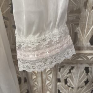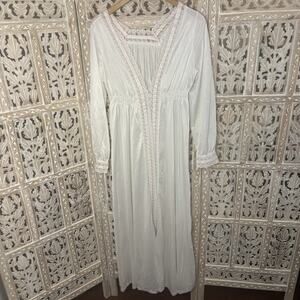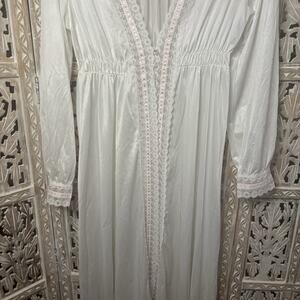 Vintage Dreamaway White Peignoir Movie Star Robe 2 Button Pink Lace Trim Nylon L