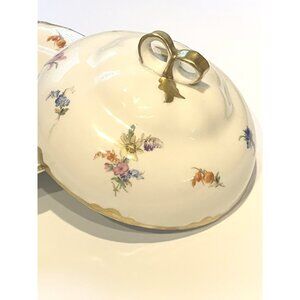 Vintage Dresden By Warwick Round Porcelain Floral Butter Dish With Lid & Gold Ha