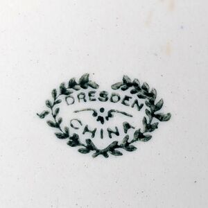 This bowl measures approximately 2 1/2" in height and 9 1/4" in diameter, making it a lovely centerpiece for a table or a charming addition to a shelf or dresser. It bears the laurel leaf mark on the bottom, common mark found on German porcelain from this period but not common mark on Dresden. This may indicate that its a reproduction.