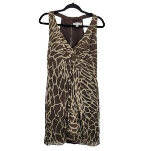 Vintage Dress 10 Silk Brown Giraffe Sleeveless Knotted Draped V-neck Tea Length