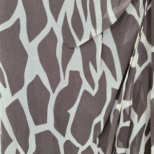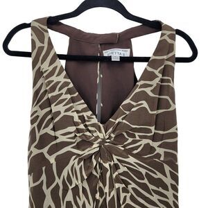 Vintage Sherrie Bloom Peter Noviello Cheeta B Dress Silk Brown Giraffe Sleeveless Knotted Draped V-neck Tea Length