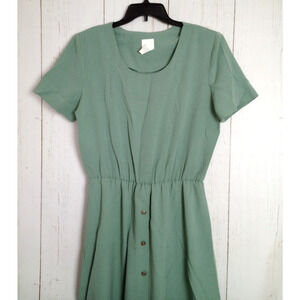 Vintage Dress 14 Sage Green Short Sleeve Button Front Shirtwaist Style Kellwood