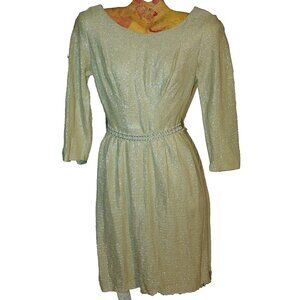 Vintage Dress 1950s Handmaid Gold Lurex Shimmer Party Small Medium