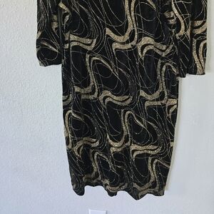 Vintage Dress 3X Women Gold Black Y2K Burnout Velvet Sheath Fairygrunge