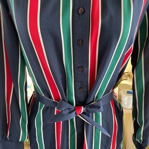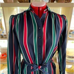 Super cool vintage dress with vertical stripes and belt in excellent condition! Zero damage. Has pockets! No stretch material. Measurements taken laid flat. 20 inches from pit to pit. 19 inch waist. 39 inches from the shoulder down.