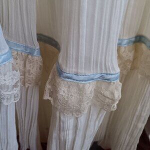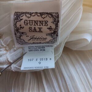 This vintage Gunne Sax dress by Jessica captures the essence of 1970s bohemian style. With its flowing maxi length and delicate lace trim, it embodies a romantic spirit, making it a timeless piece for vintage fashion enthusiasts. Crafted in cream, it features a ribbon tie waist for a flattering fit.