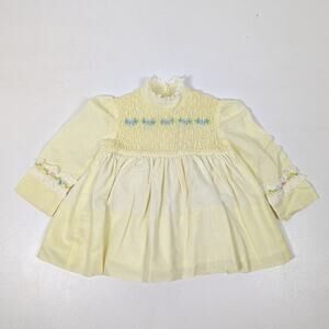 Vintage Dress Baby Girls Size 12m Yellow Smocked Lace