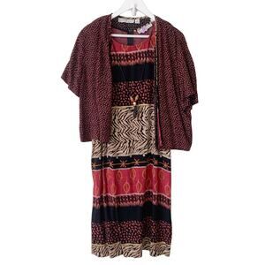 Vintage Dress Barn 2-Piece Set Size 10 Midi Dress Cardigan Floral Rayon Floral