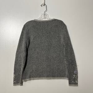 Vintage Dress Barn Floral Silk Blend Knitted Gray Cardigan Sweater Womans Small