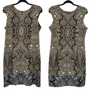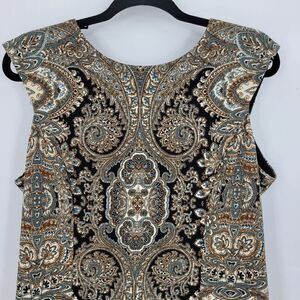 Vintage Dress Barn Sleeveless Shift Dress 14 Brown Gray Paisley Medallion Print